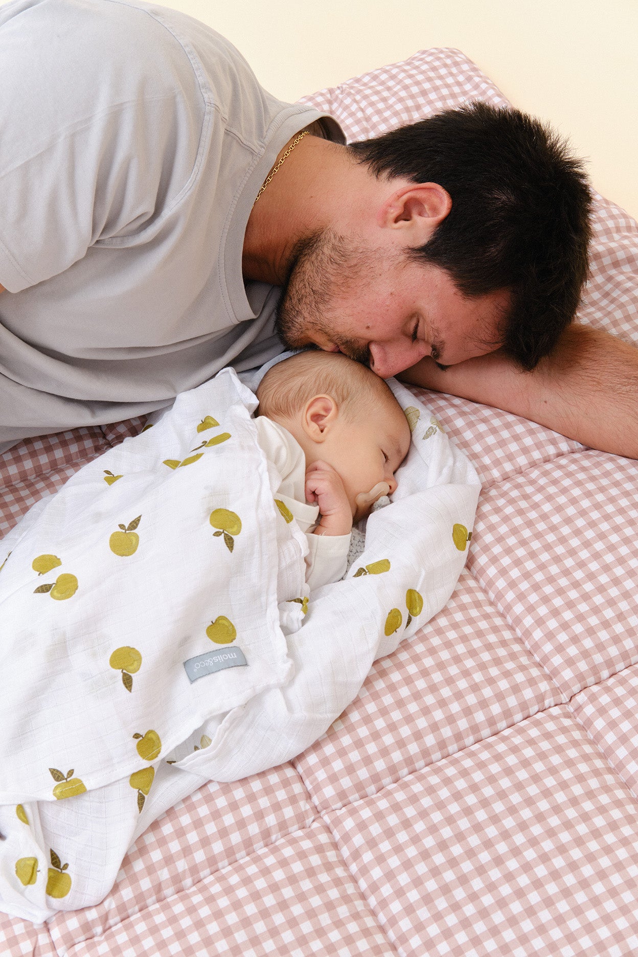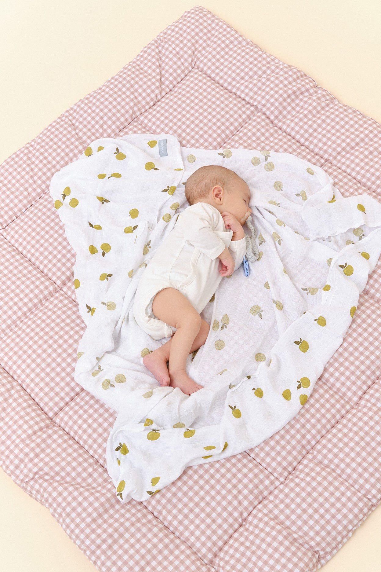 Unsere Decke aus Bambus-Musselin ist extrem weich und leicht. Dank seiner vielseitigen Größe ist er für unzählige Zwecke einsetzbar, sodass Sie ihn immer in der Nähe Ihres Babys tragen können.