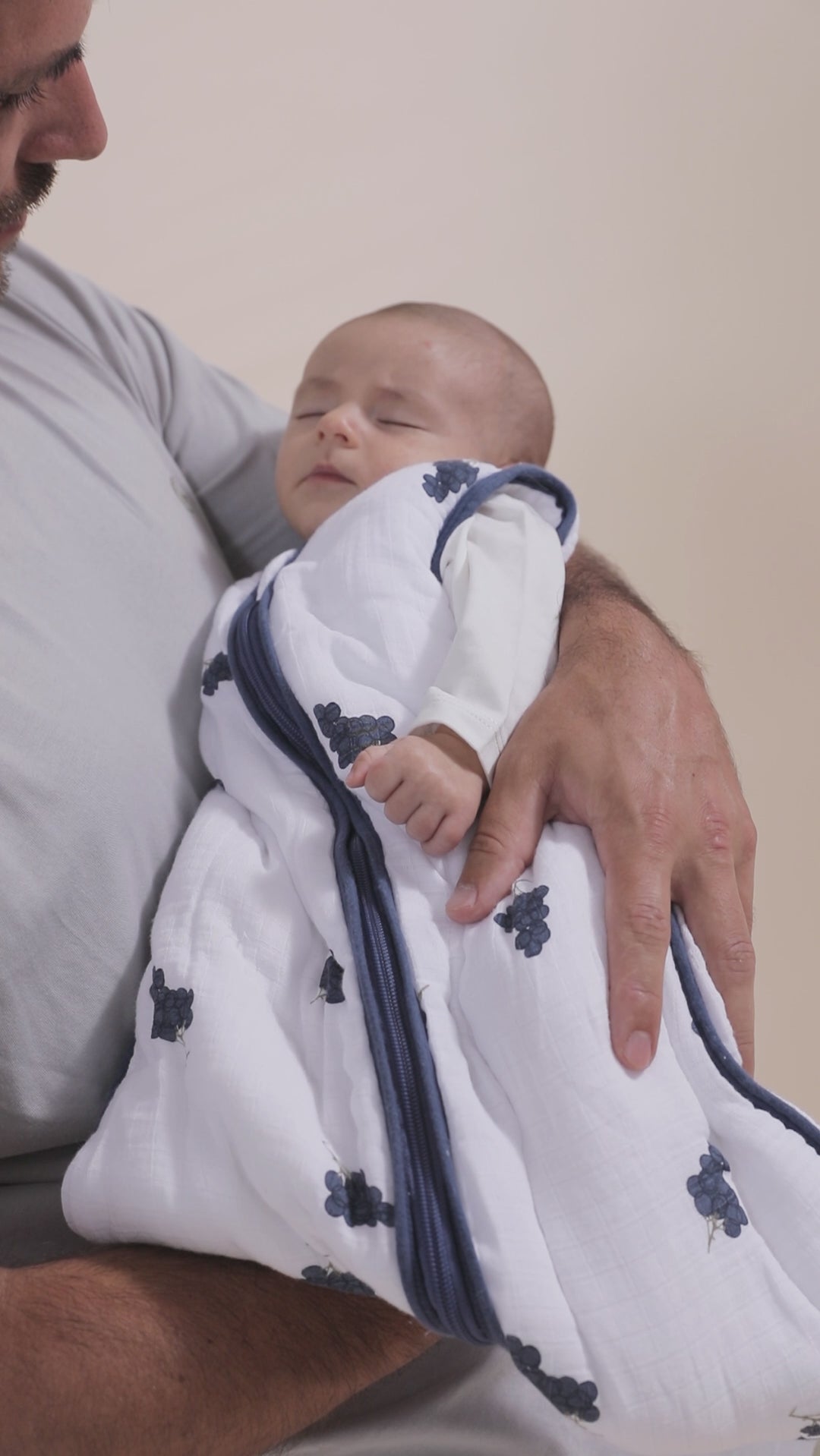 Unser warmer Winterschlafsack ist ideal für die kältesten Monate des Jahres. Der Musselinstoff fühlt sich besonders weich und angenehm auf der empfindlichen Haut deines Babys an.