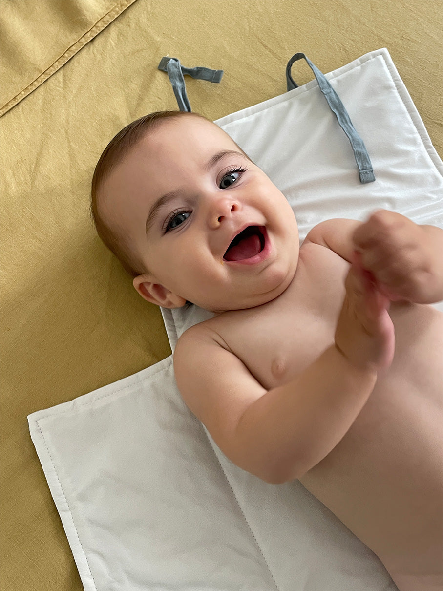 Leicht, faltbar und einfach in der Wickeltasche mitnehmen – das ideale Accessoire für Zuhause und unterwegs.