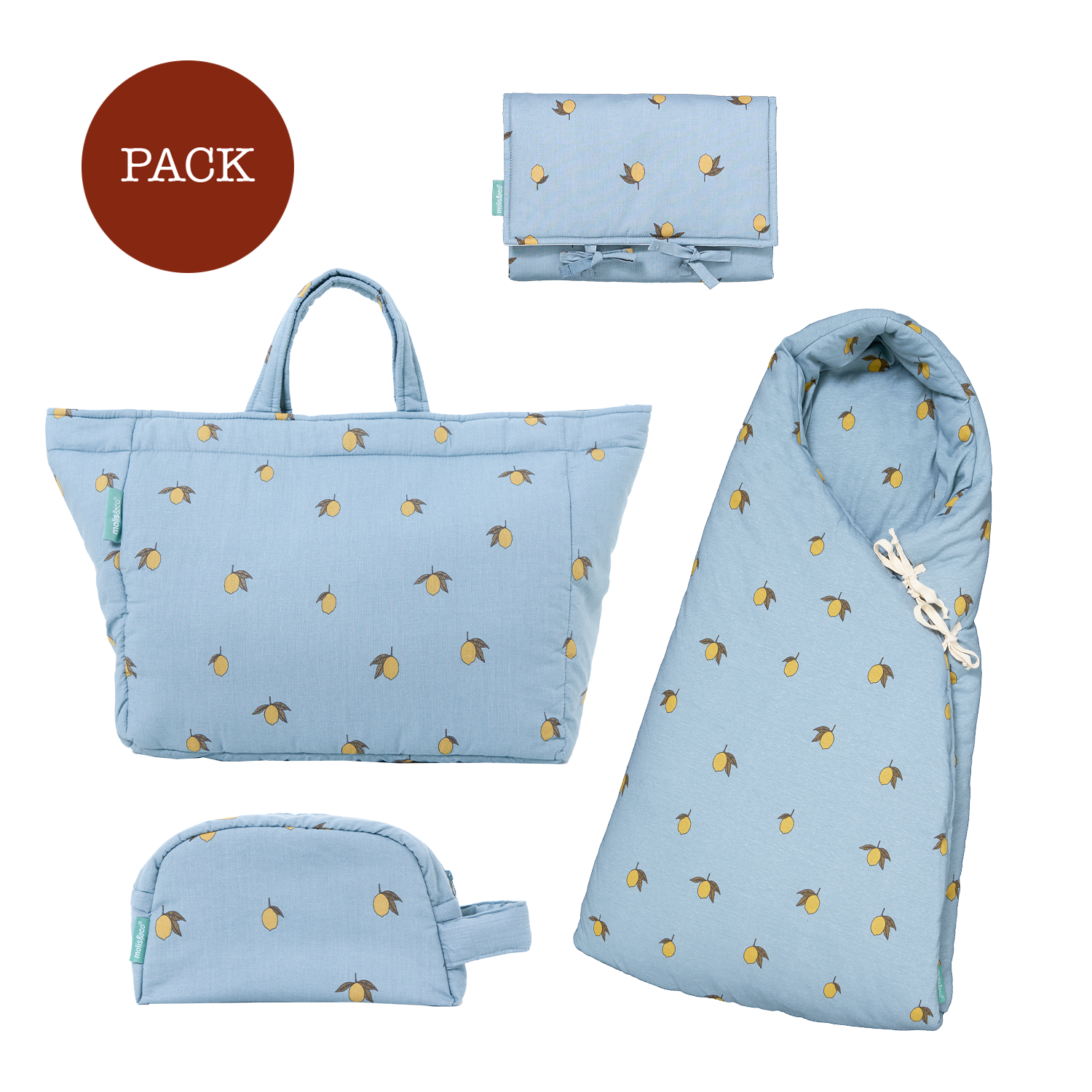 Spaziergang pack Colima (4 produkte): Kinderwagen-Fußsack + Shopper-Tasche + Faltbare Wickelauflage + Kulturbeutel