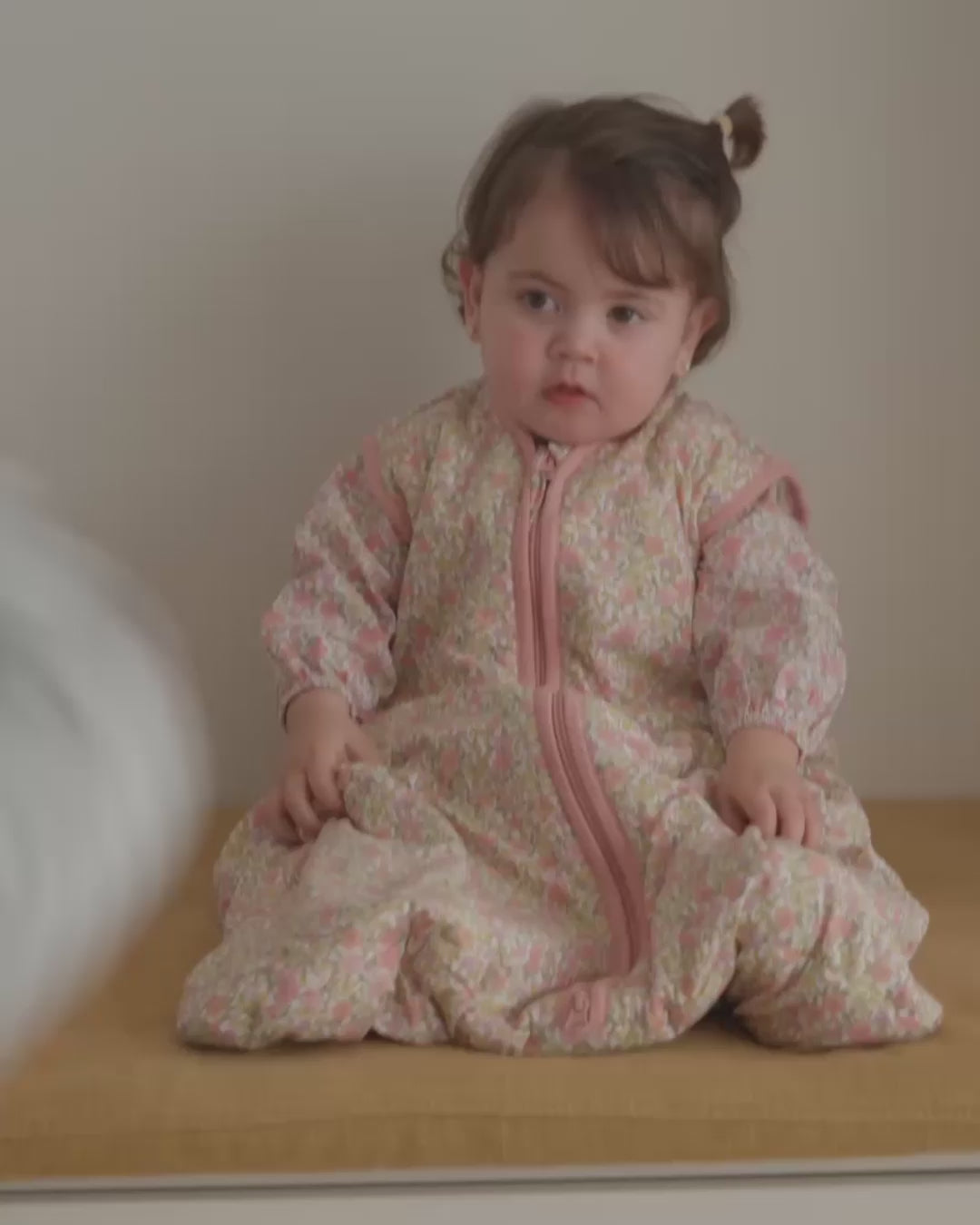 Our mid-season sleep bag is lightly padded and ideal for the milder months of the year. Made from 100% cotton, it provides great comfort and a soft feel on the baby’s skin. The light padding helps maintain the little one’s body temperature throughout the night, promoting better sleep. Suitable for room temperatures between 21°C and 23°C.
