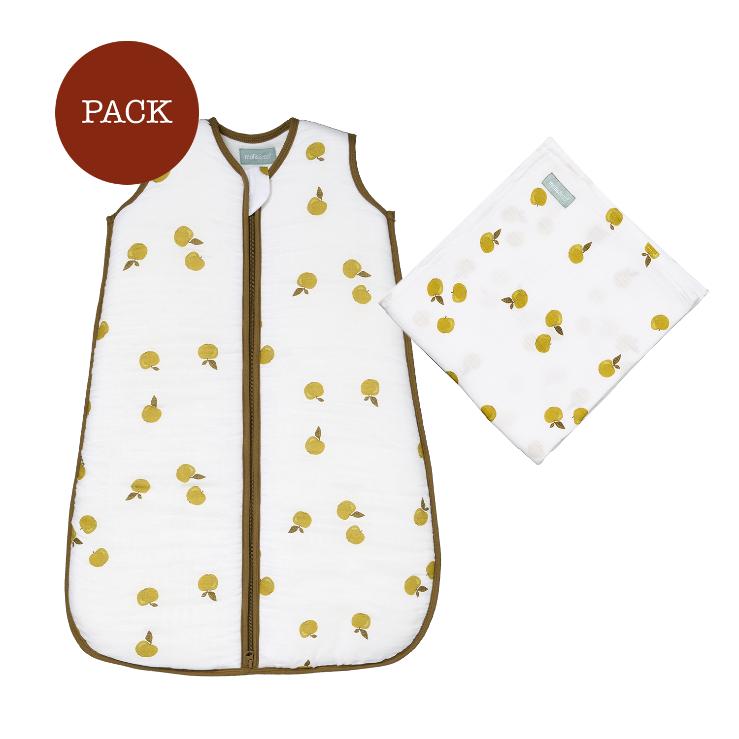 Apples Baby Muslin Pack (2 products): bamboo muslin blanket + muslin sleeping bag TOG 2.5
