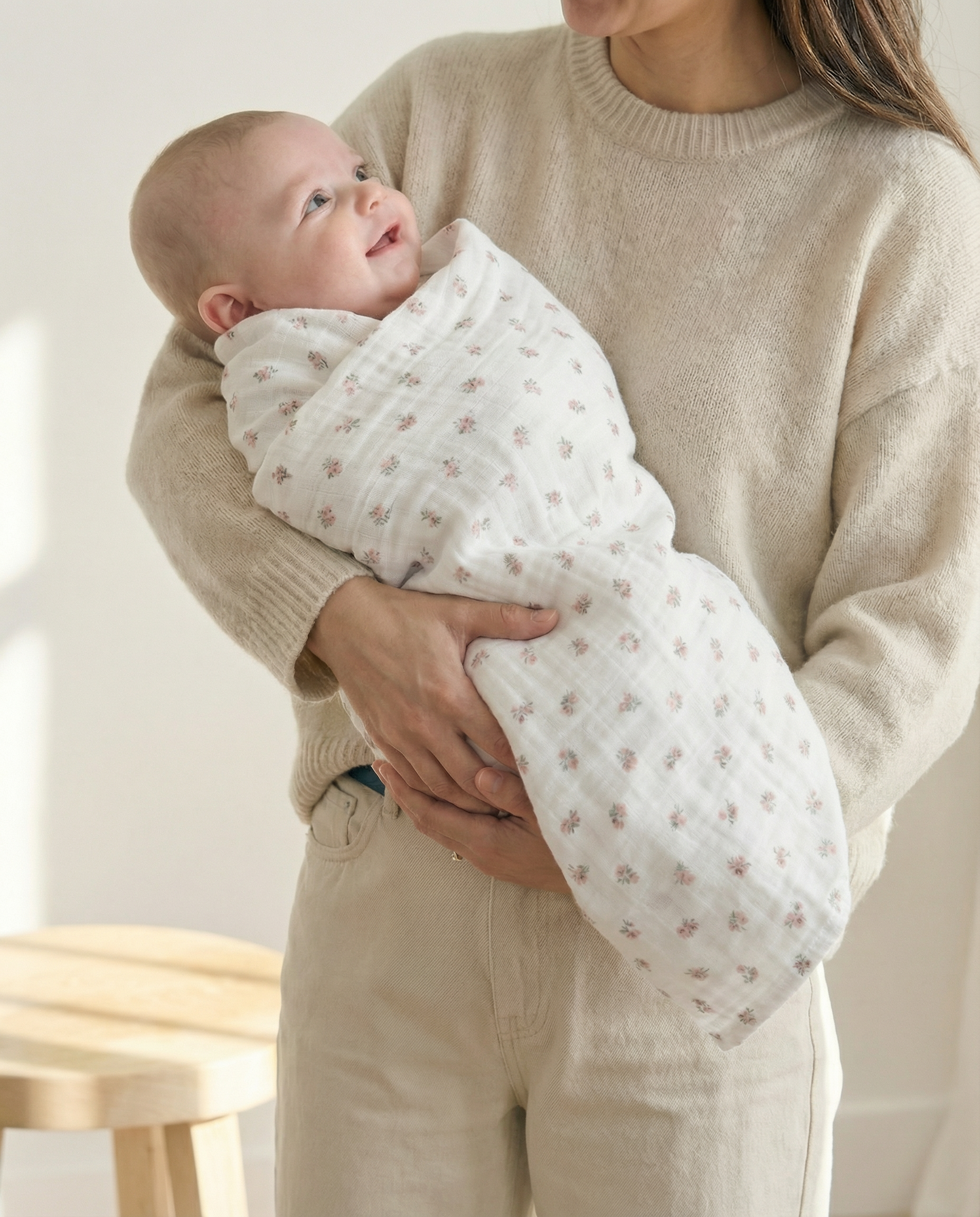 Our bamboo blanket is incredibly soft and lightweight. Its versatile size allows it to be used in countless ways so that you always carry it close to your baby.