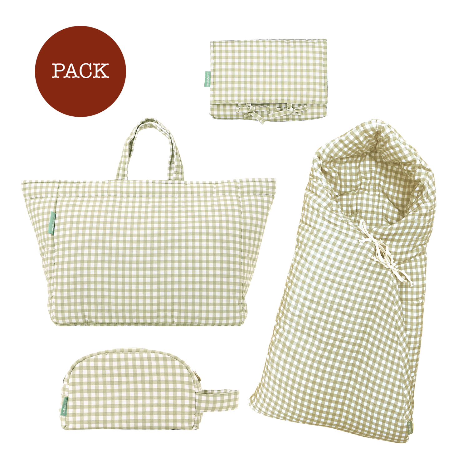 Walking pack Mint Tea (products): Carricot footmuff + shopper bag + changing mat + travel bag