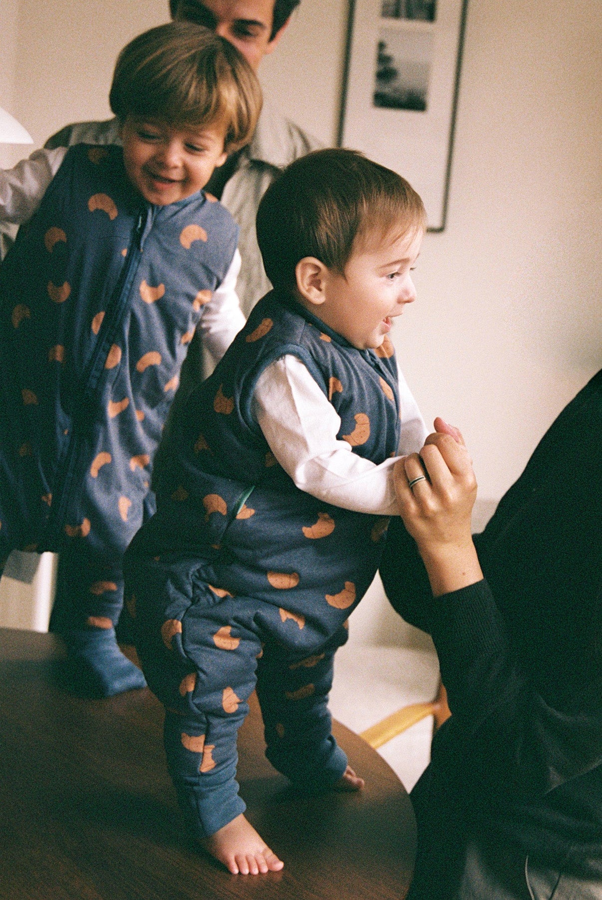 Our pyjama blanket is a warm piece of clothing designed to be worn over pyjamas to keep your little one warm while they sleep, play, walk or crawl. It is ideal for keeping them warm during the coldest months of the year. Its design allows it to be used in high chairs, car seats or pushchairs. Suitable for rooms with temperatures of 21ºC or lower.