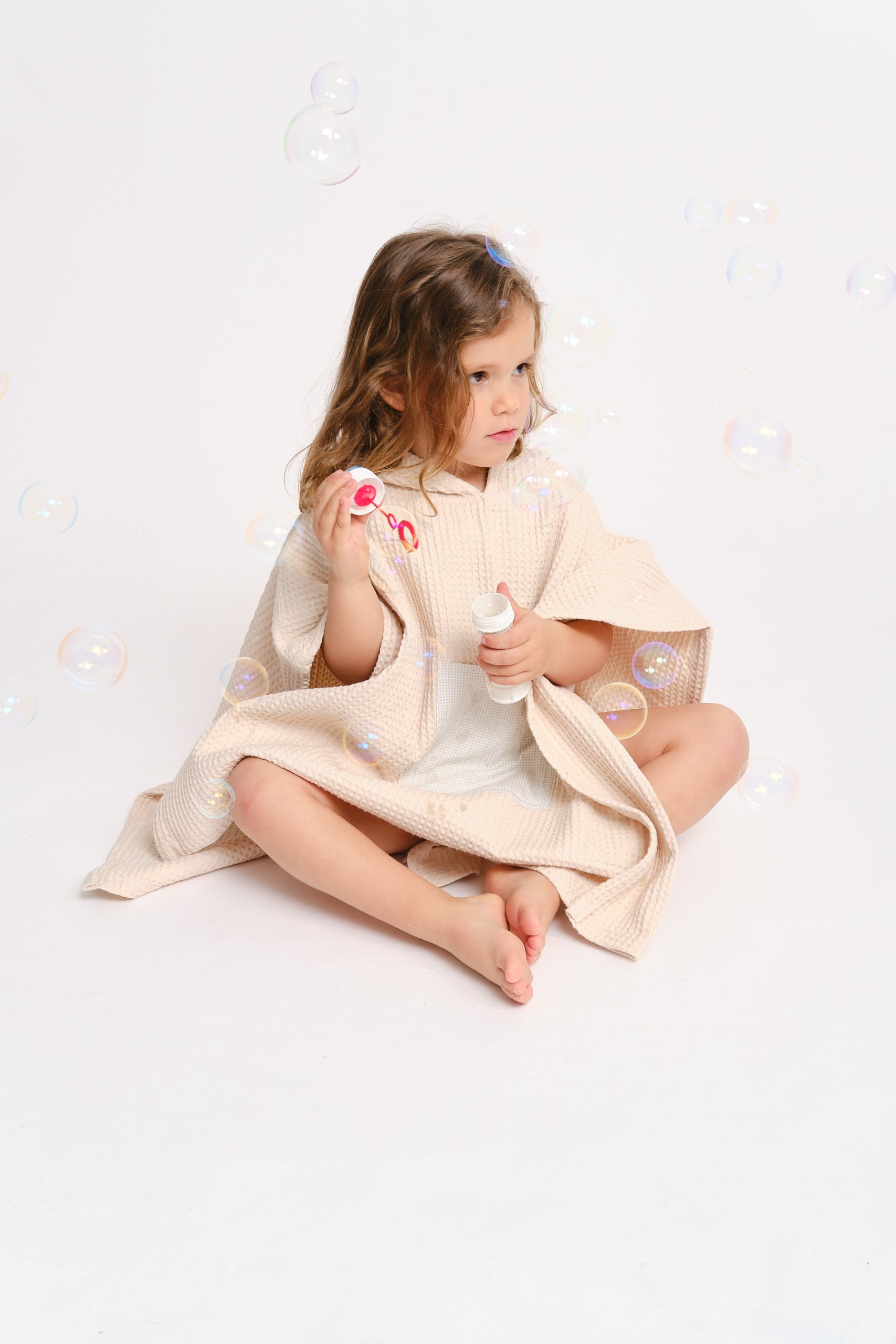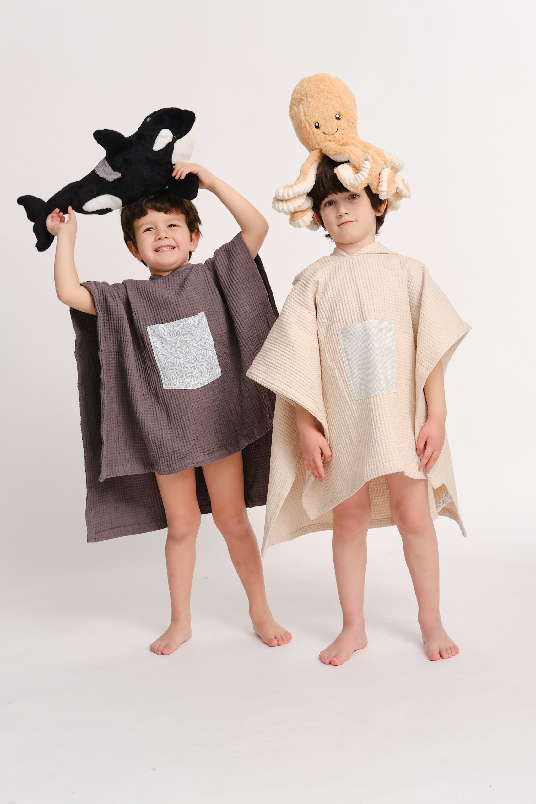 The hooded towel is perfect for the pool and the beach, drying and protecting the kids skin from the sun when the children get out of the water.