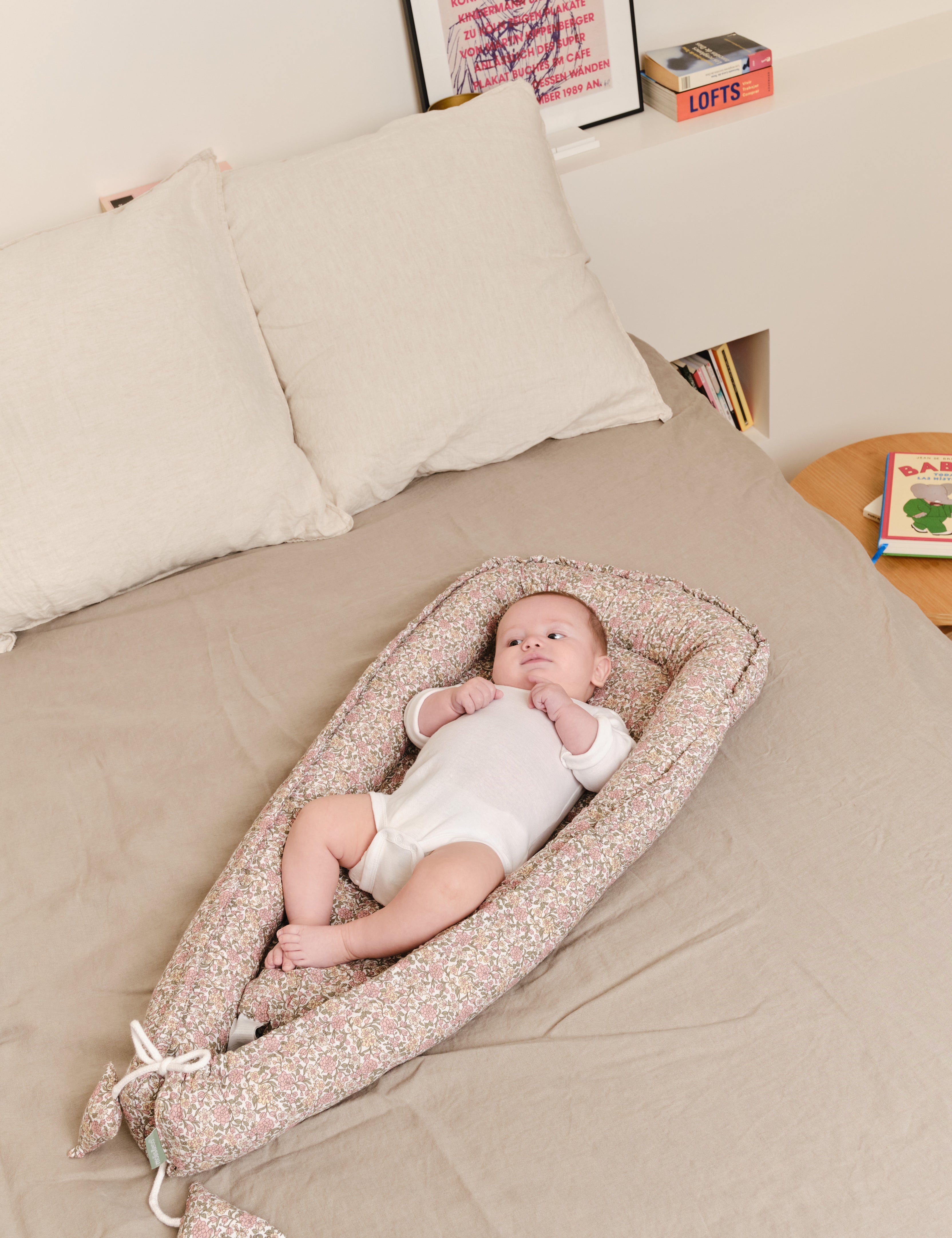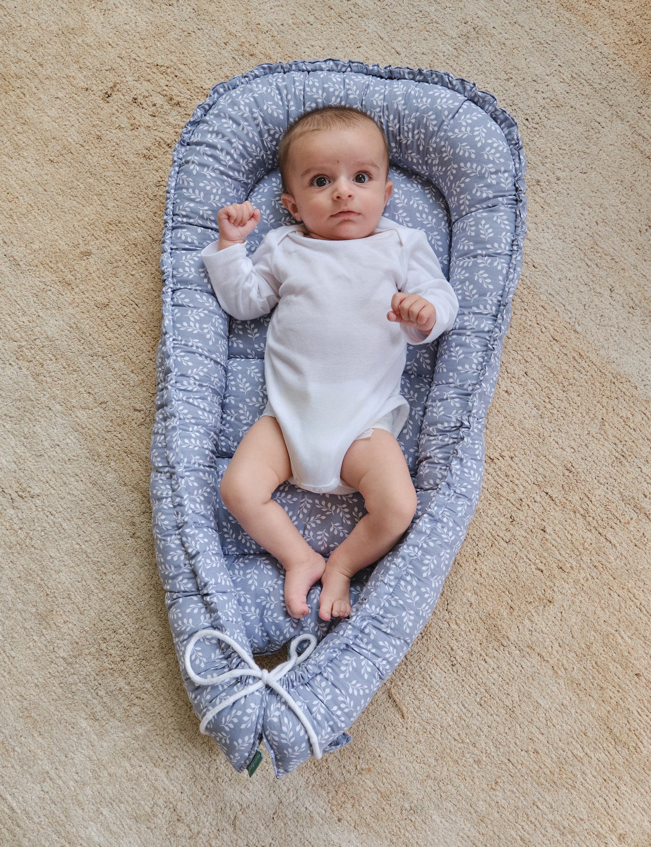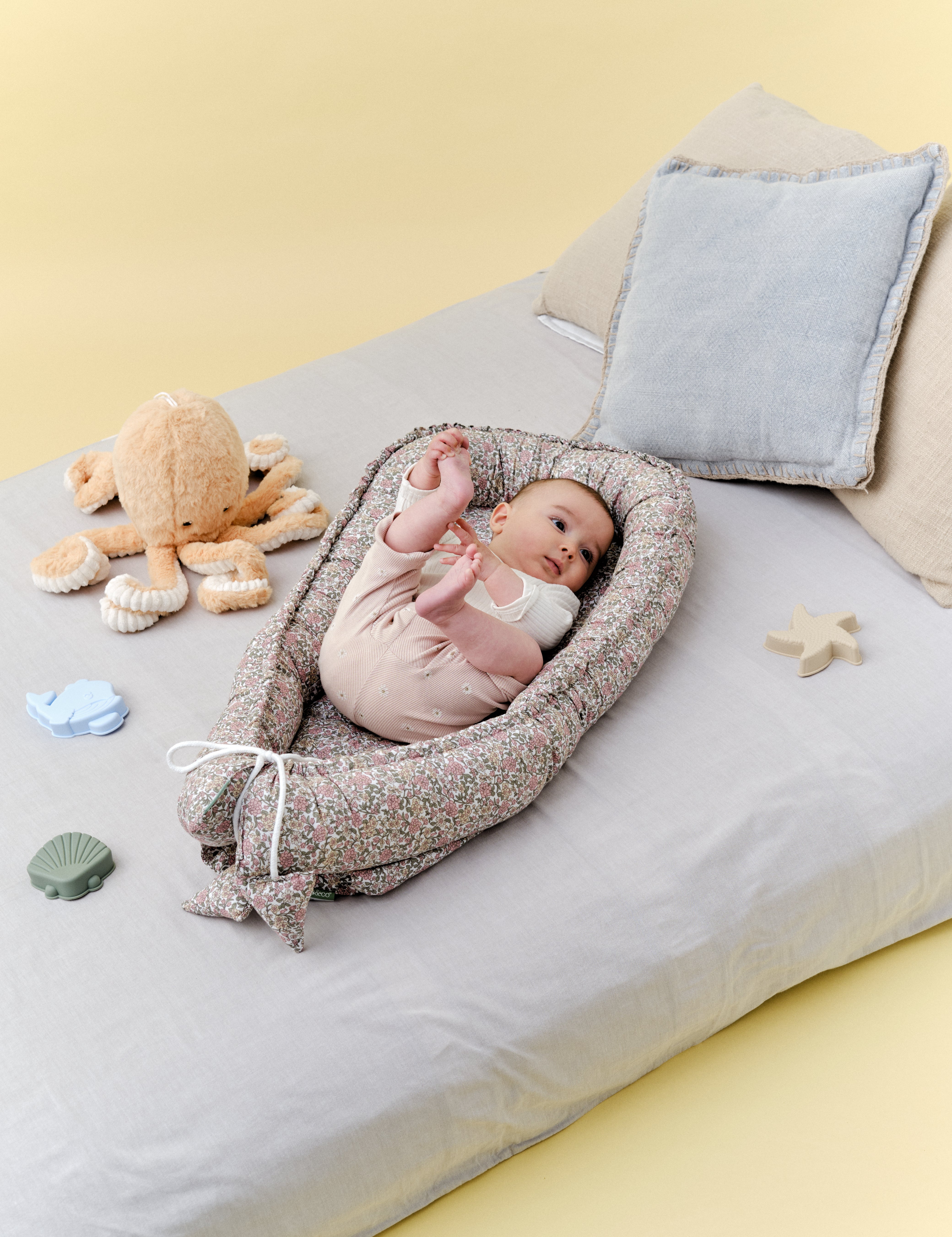 • Stimolo allo sviluppo sensoriale: Durante il gioco, il nido può essere uno spazio sicuro dove il bambino inizia a sviluppare le sue abilità motorie e sensoriali. Disporre piccoli giochi attorno al nido incoraggia il bambino ad allungarsi, girarsi e afferrare.